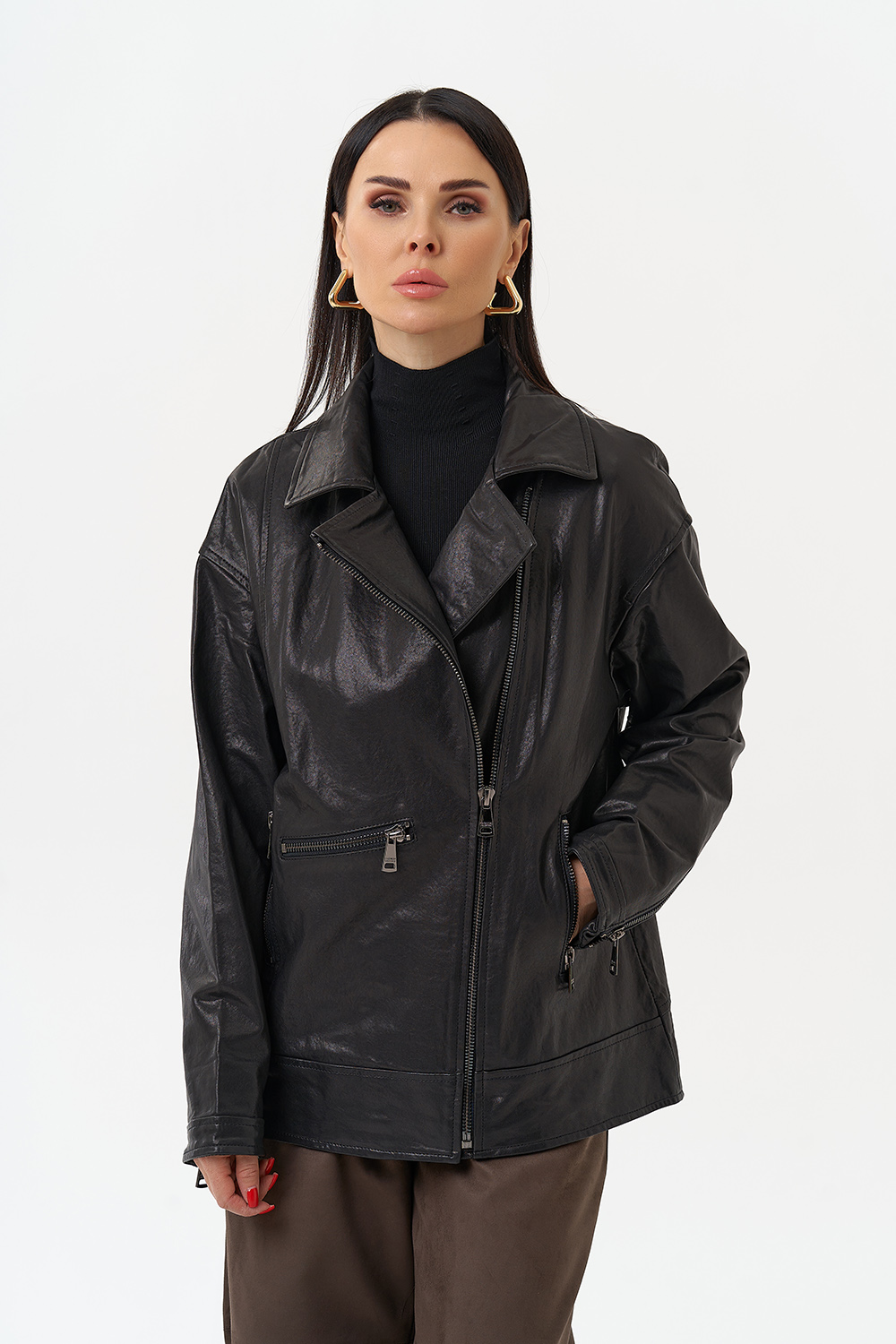 Женская косуха оверсайз черного цвета артикул murino29989 и другие товары категории Женские кожаные куртки и плащи доступны в каталоге интернет-магазина Малина Сибериан в Мурино по цене от 3933 ₽. Ознакомьтесь с подробными характеристиками и описанием, а также отзывами о данном товаре и нашей компании. Делайте правильный выбор и заказывайте Женские кожаные куртки и плащи онлайн.
