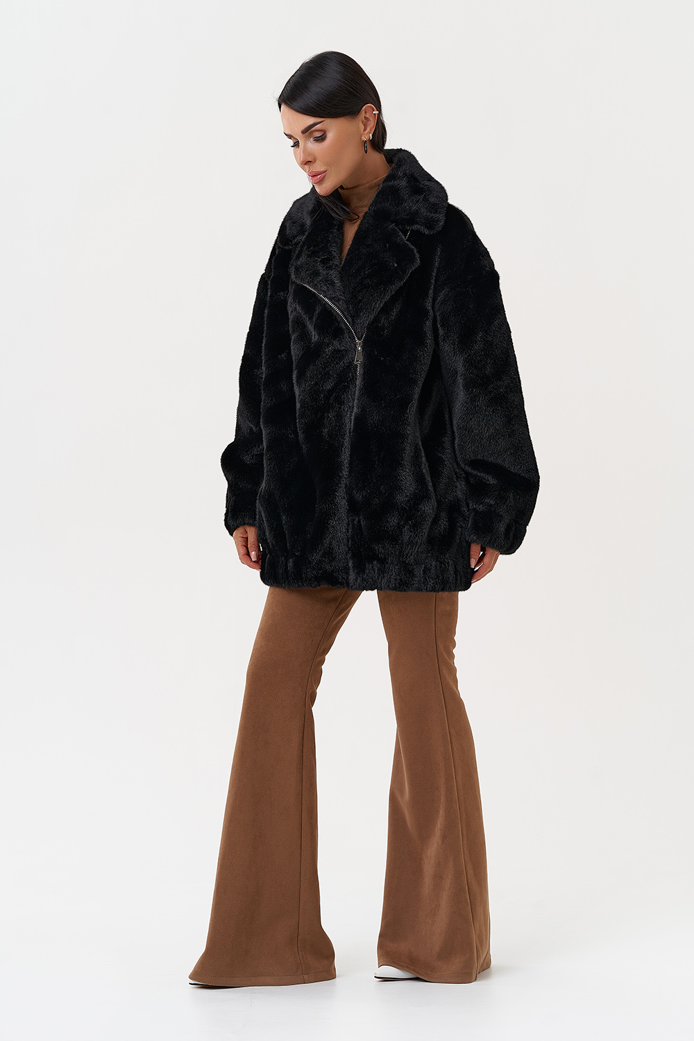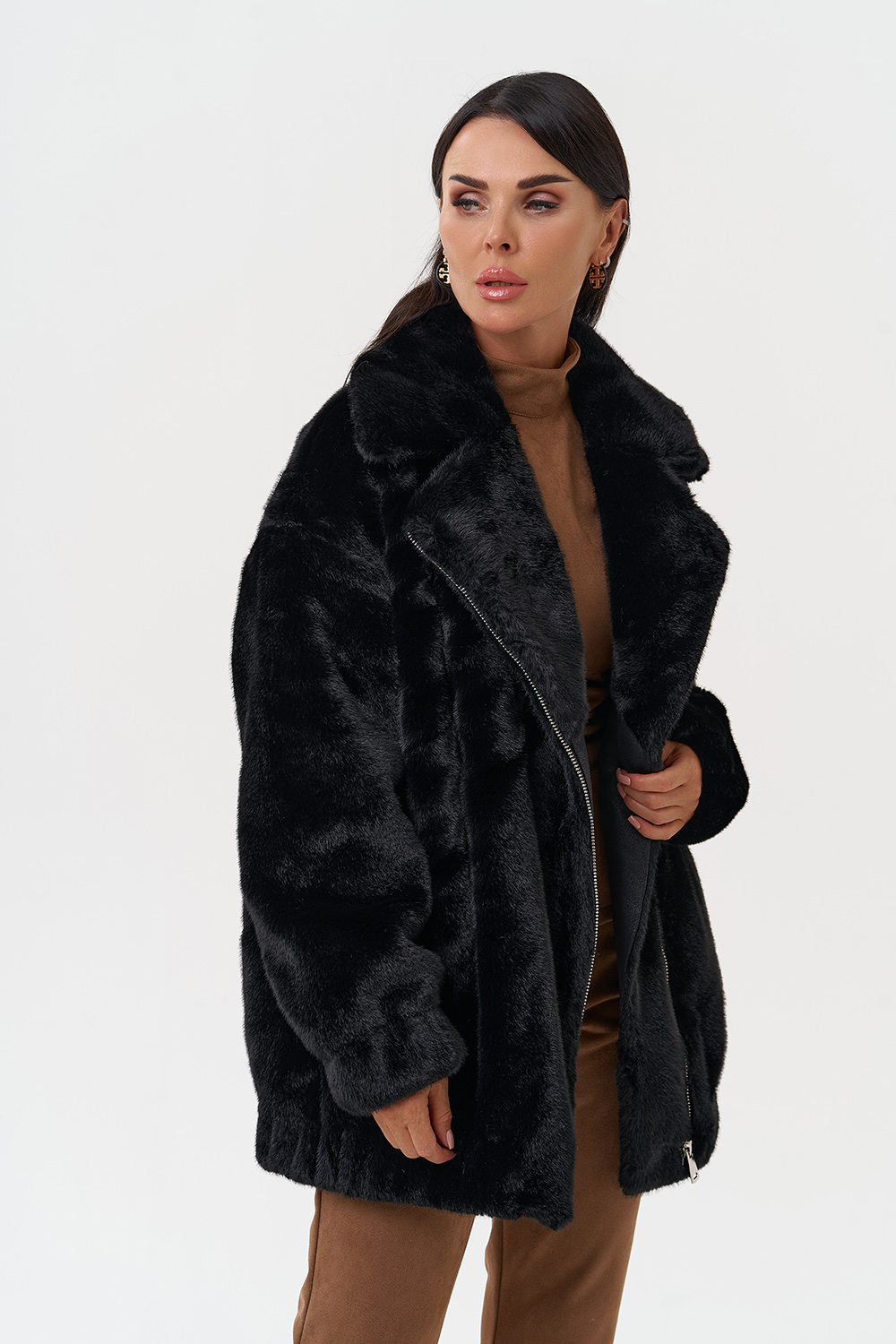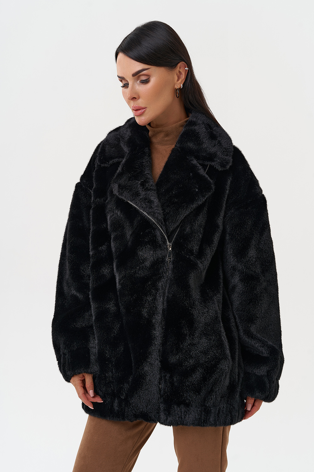 Фасон - прямой Длина изделия - 75 см Цвет - черный Материал - экомех Состав полотна - полиэстер 100% Подкладка - полиэстер 100% Вид застежки - молния Вид ворота - английский воротник Фасон рукава - съёмный, длинный |